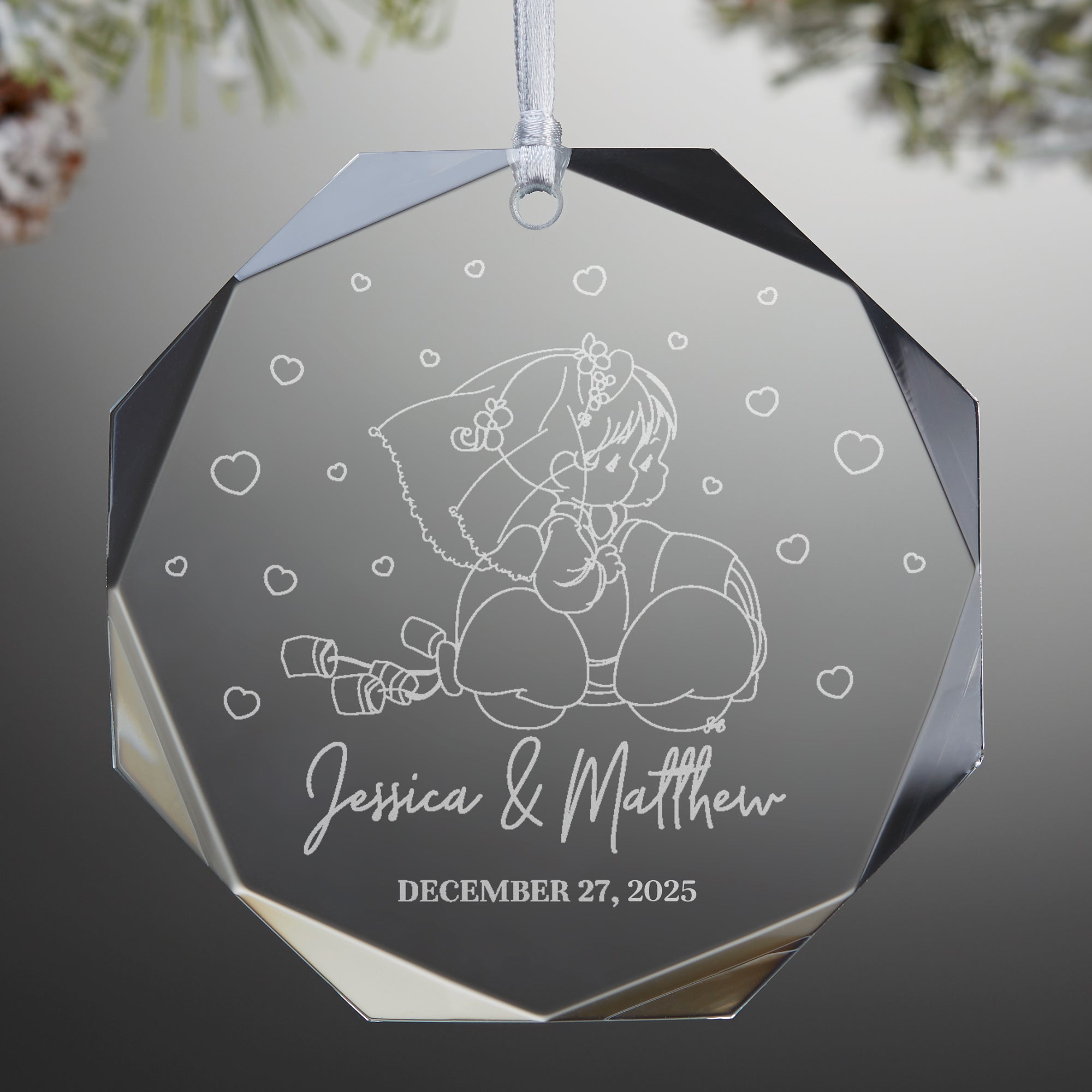 Personalize the elegant Precious Moments® Just Married Premium Engraved Ornament to commemorate their first Christmas together.
