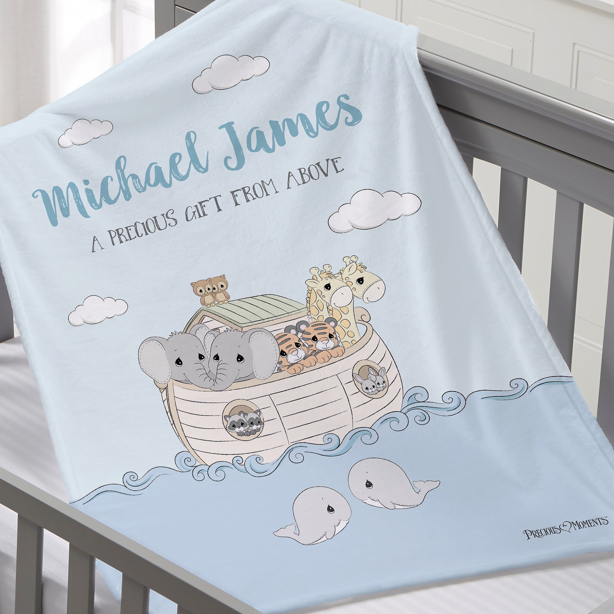 Precious MomentsĀ® Noah's Ark Personalized Baby Boy Blanket