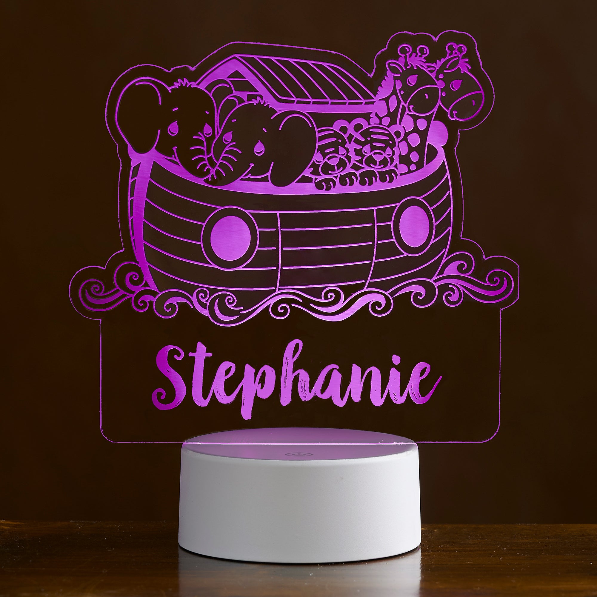 The Precious Moments® Noah's Ark Personalized Baby LED Sign will fill their room with a soft glow. The engraved acrylic sign lights up in the base and makes a sweet piece of nursery decor.