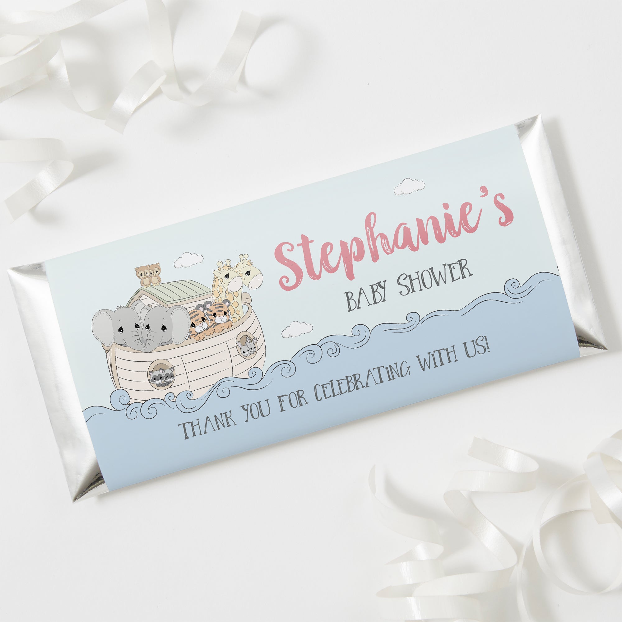 Thank your guests in a sweet way with our Precious Moments® Noah's Ark Personalized Candy Bar Wrappers! These wrappers fit around standard sized candy bars, creating a unique favor gift to thank guests for attending your baby shower.