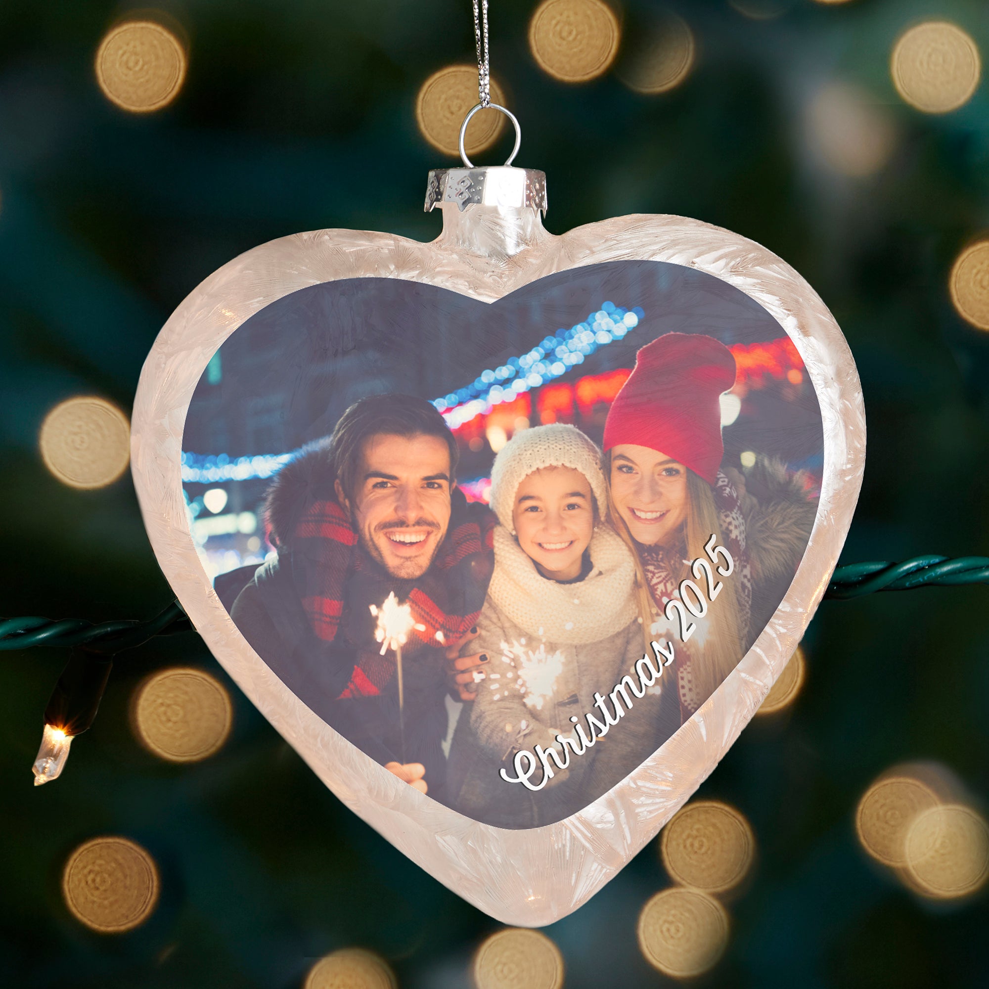 Precious Photo Personalized Lightable Frosted Glass Heart Ornament