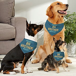 Our Promoted to Big Brother Personalized Dog Bandana is perfect for a one-of-a-kind baby announcement. Tie this dog bandana around your dog and share the exciting news of a new arrival in the family.