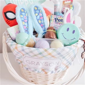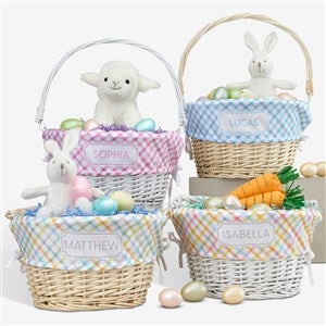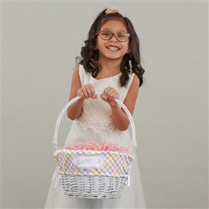 The Rainbow Pattern Personalized Easter Basket is the perfect wicker basket to fill with all of their goodies from the Easter Bunny. The Easter basket liner features a classic check pattern, making it the perfect choice for any kid!