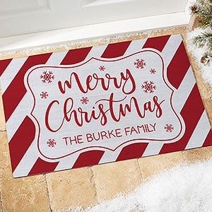 Give friends and family a festive, warm welcome this holiday season with our Red & White Christmas Personalized Doormats.