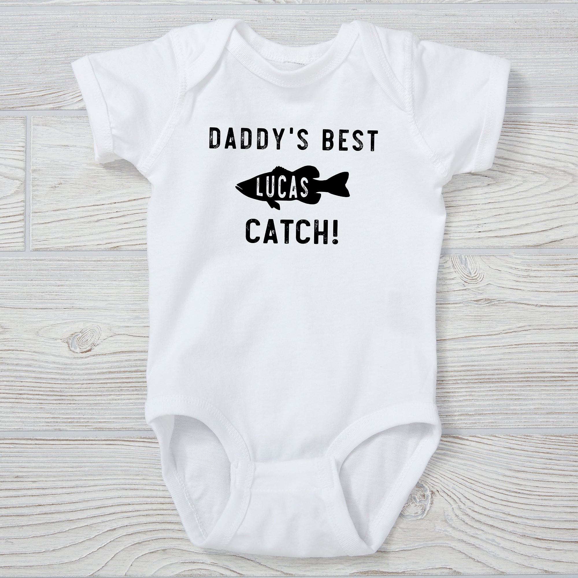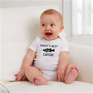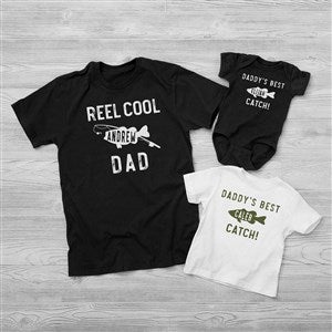 Let them feel as cool as dad while they wear our Reel Cool Like Dad Personalized Baby Clothing.