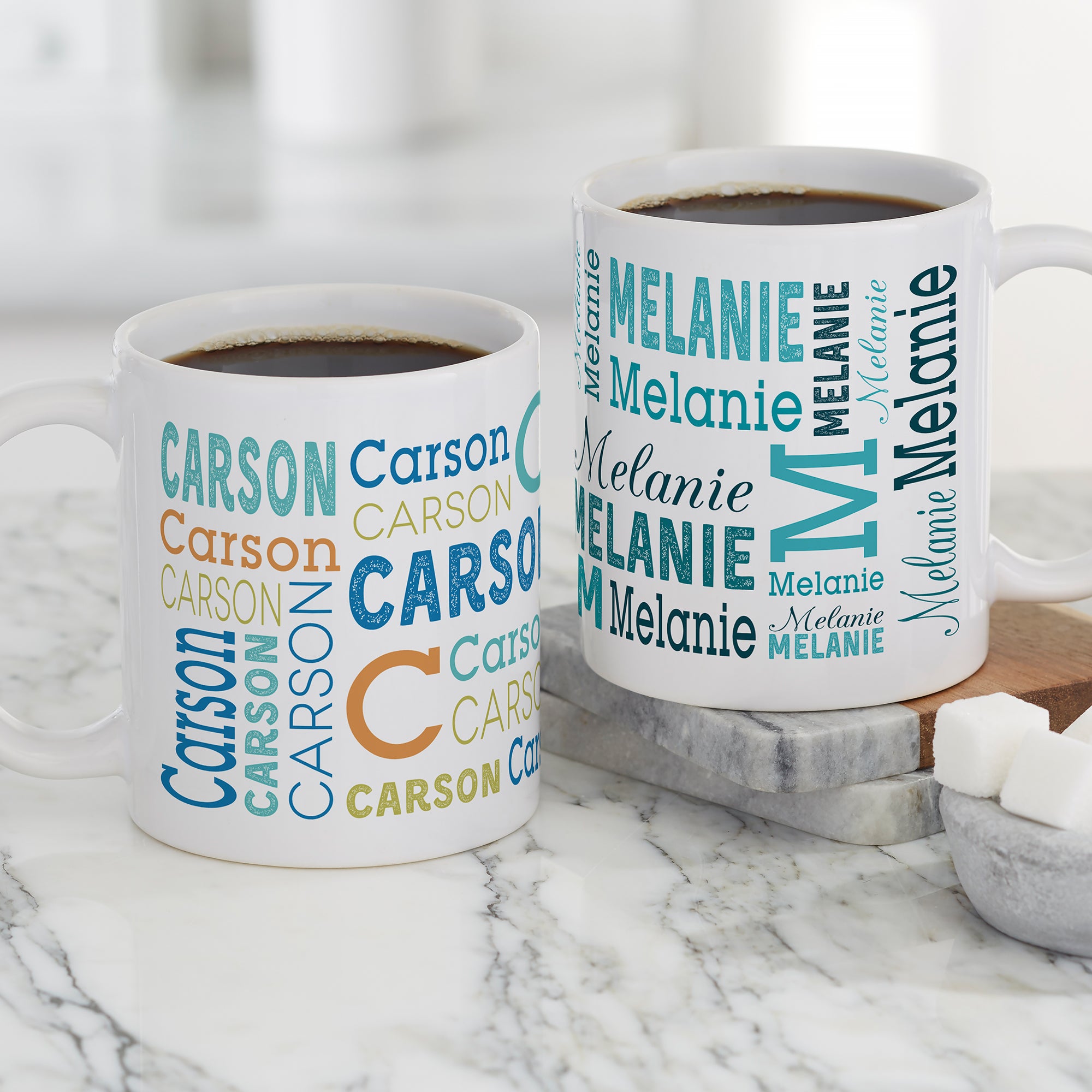 Our Trendy Repeating Name Personalized Coffee Mugs is the perfect personalized gift for anyone on your list! A signature piece perfect for the home or office. Also great for coworkers and students, too!