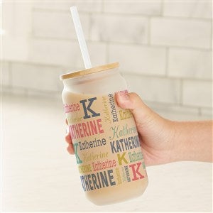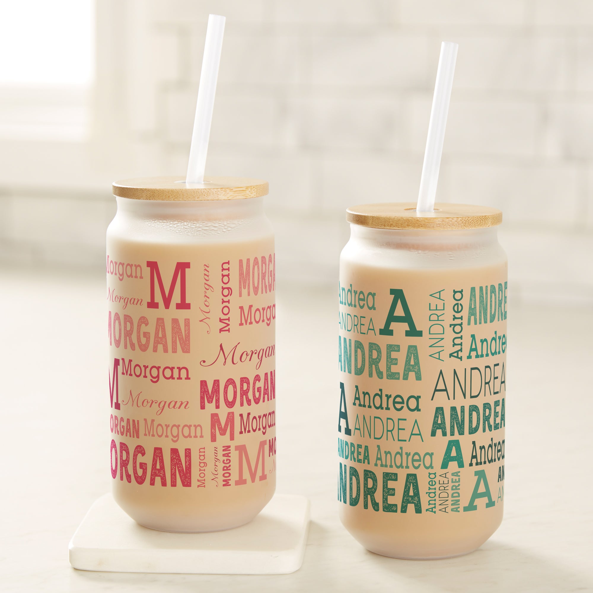 Sip in style with our Trendy Repeating Name Personalized Frosted Iced Coffee Tumbler. A bamboo lid and straw add sustainable style and functionality, making this a perfect choice for travel drinkware and reducing spills in any environment! The bamboo lid fits perfectly on the glass and has a hole specifically built for the straw.