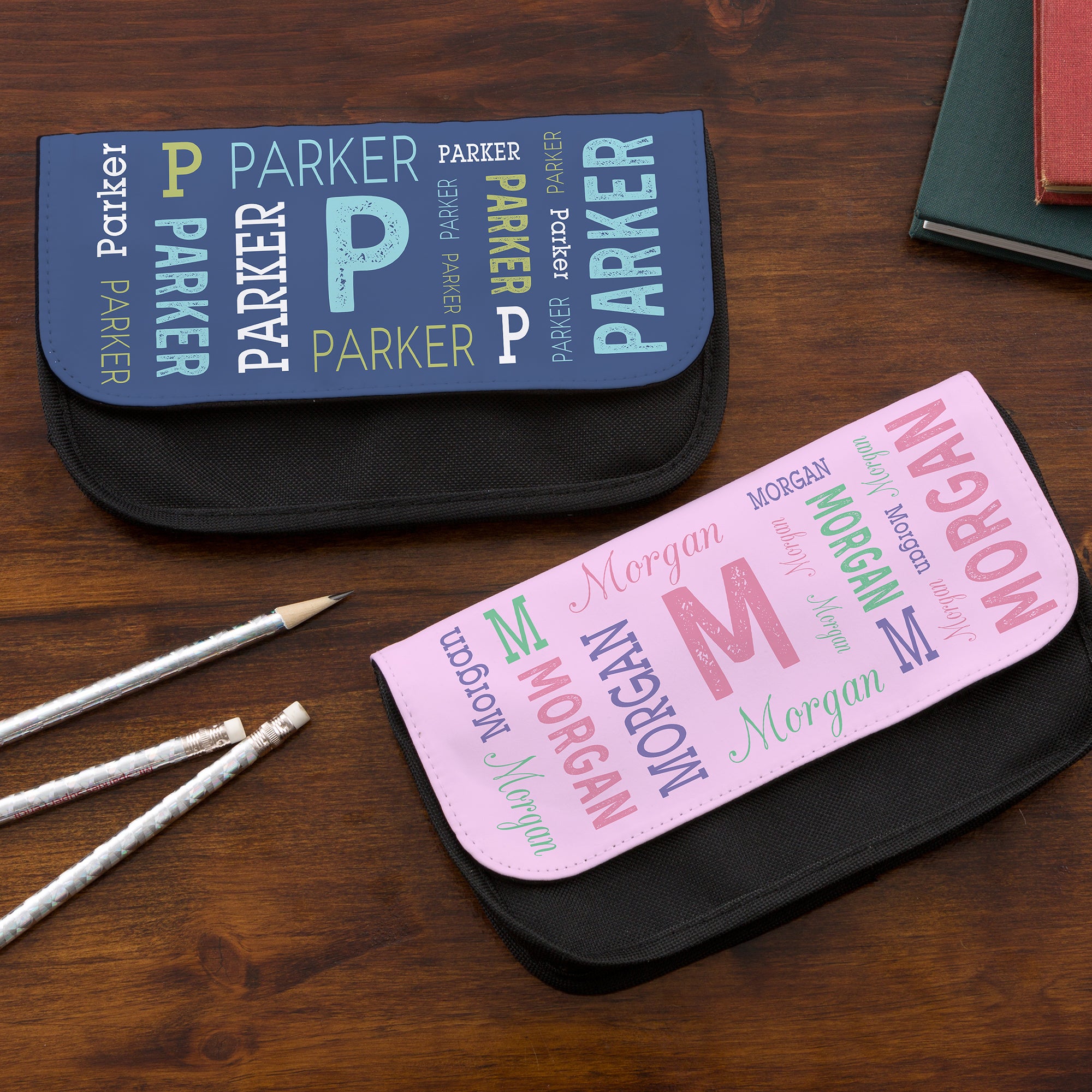 Store pens, pencils and more with the Repeating Name Personalized Pencil Case. This pencil case features two interior zippered pouches, perfect for keeping everything organized.