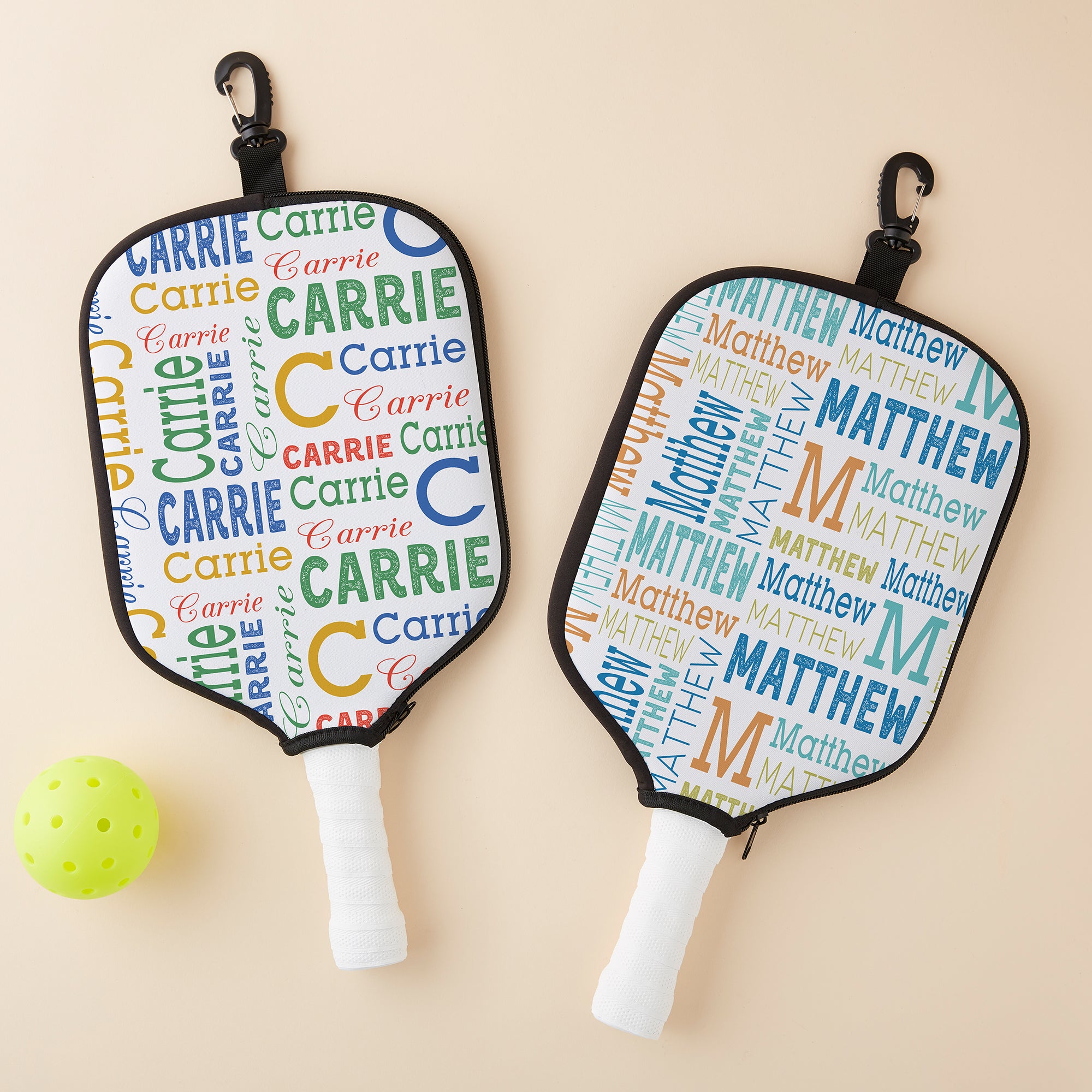Trendy Repeating Name Personalized Pickleball Paddle Cover