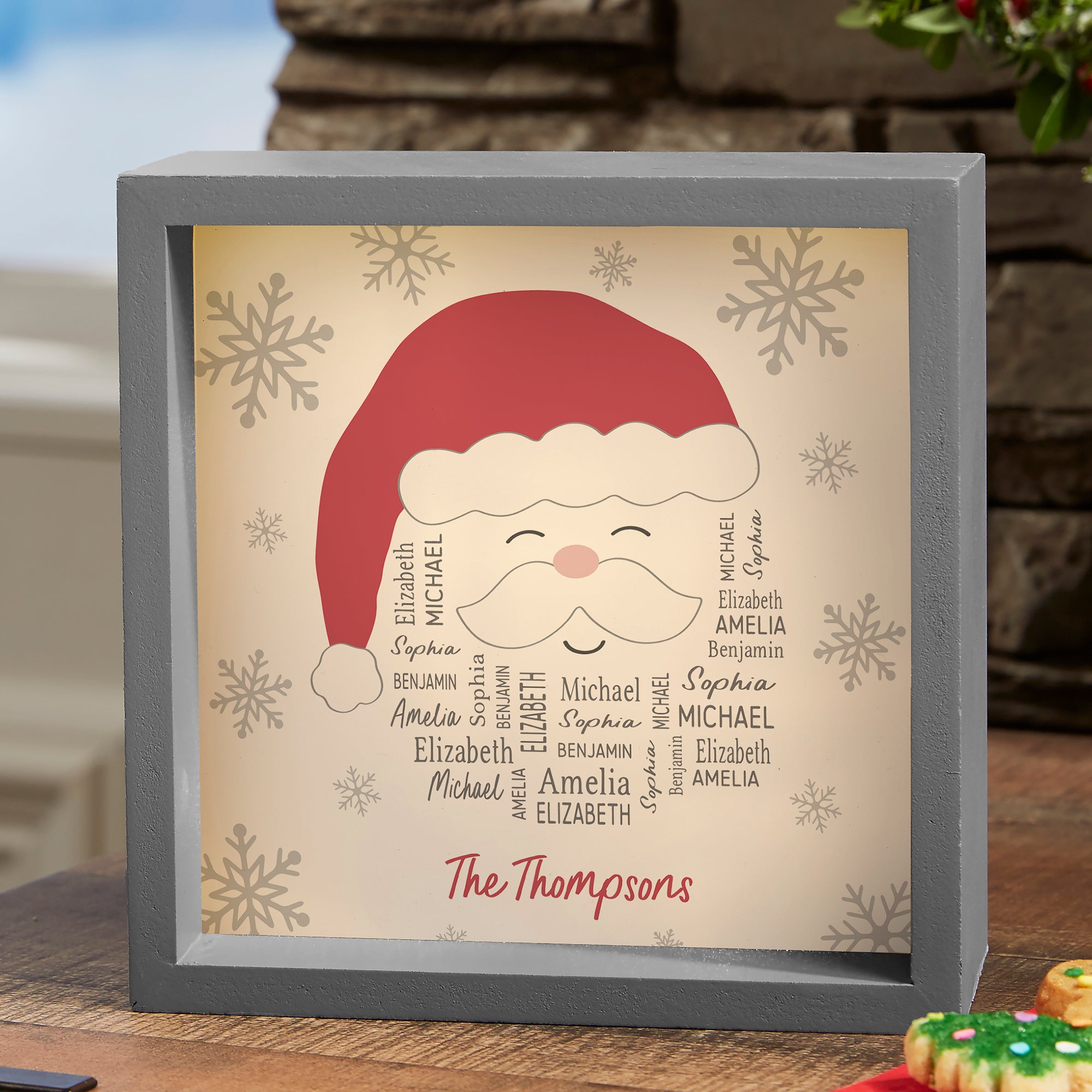 Santa Repeating Name Personalized LED Light Shadow Box