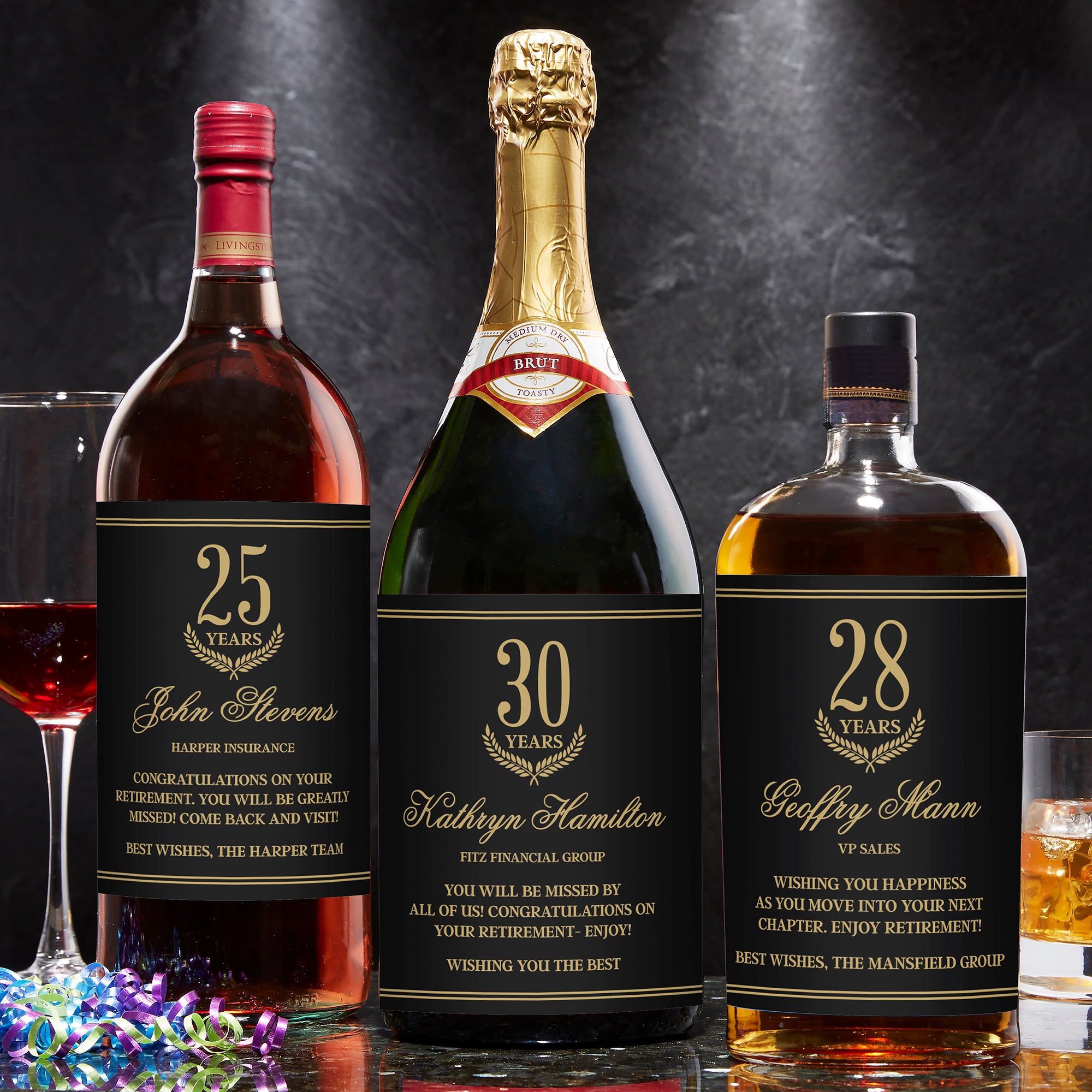 The Retirement Personalized Liquor Bottle Label is the perfect way to wish family, friends and colleagues admiration for the many years of dedication and hard work, along with a bottle of whiskey!