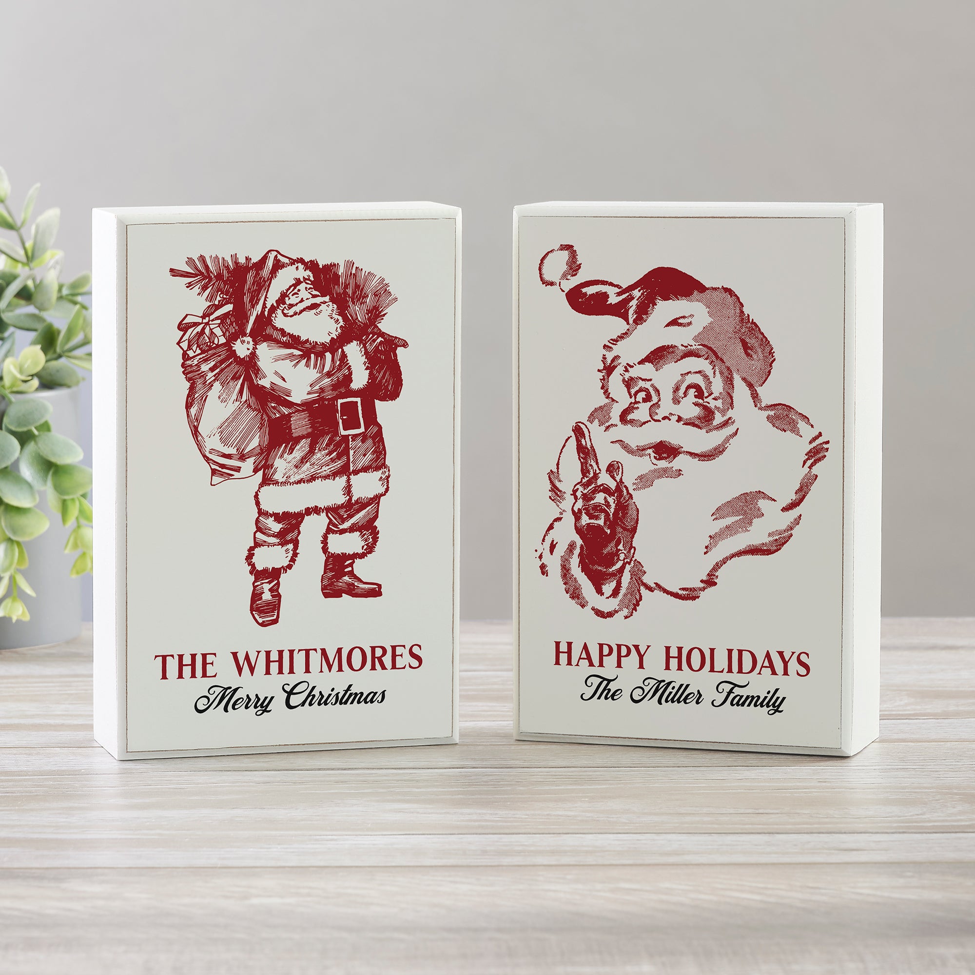 Retro Santa Personalized Christmas Rectangle Shelf Block