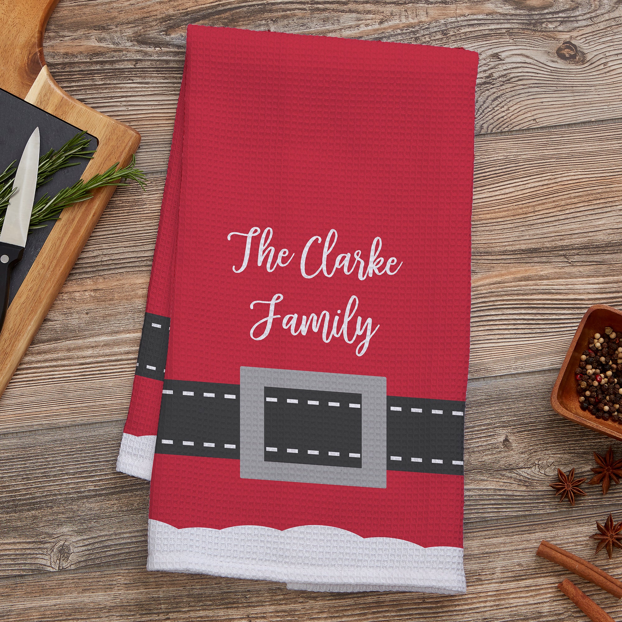 Santa Belt Personalized Waffle Weave Kitchen Towel