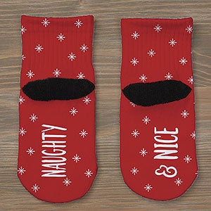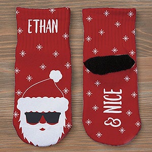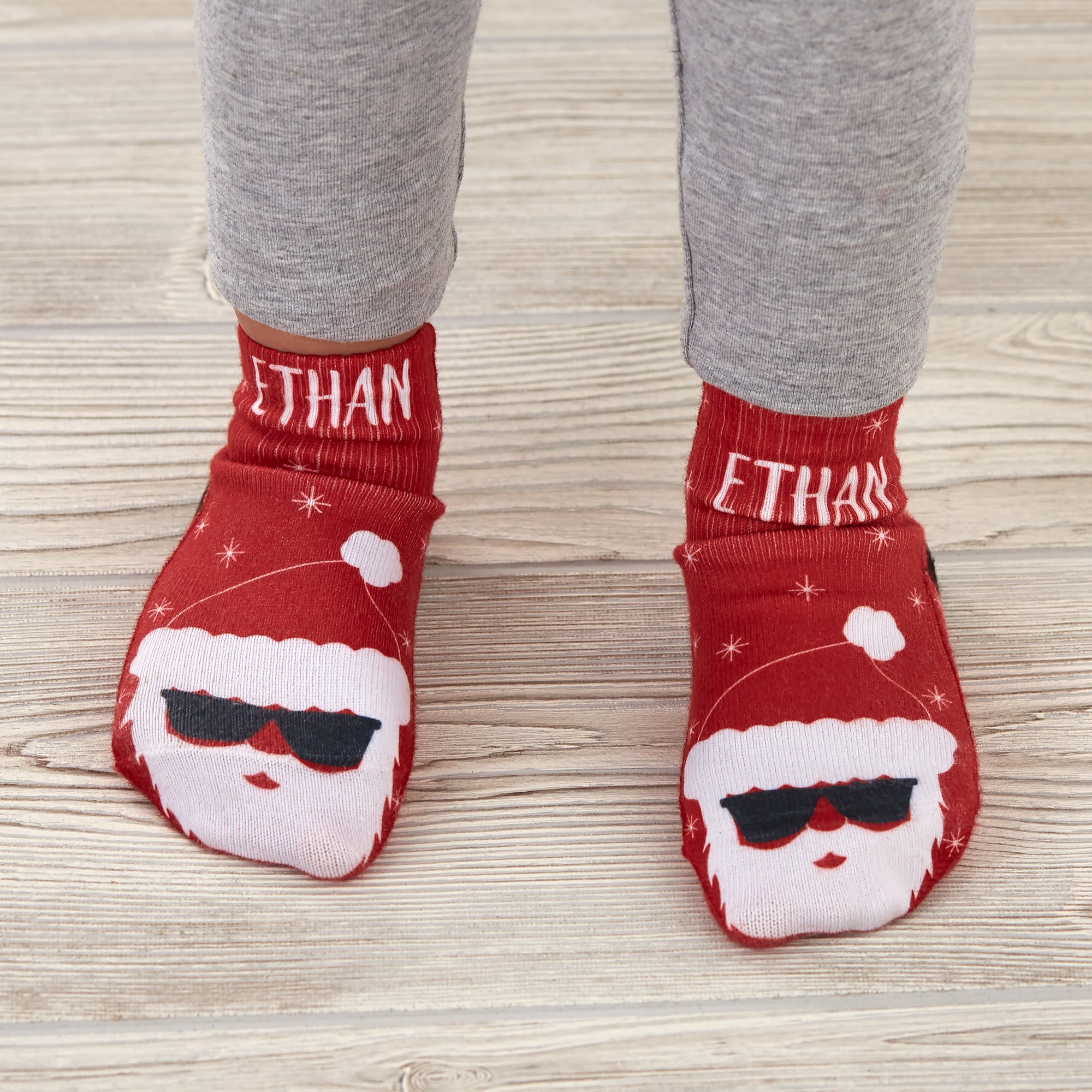 Your little one will love walking around the house this holiday season wearing their very own Santa Character Personalized Toddler Christmas Socks. The whimsical Santa Character adds festive flair to any holiday attire.