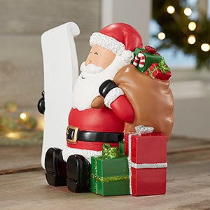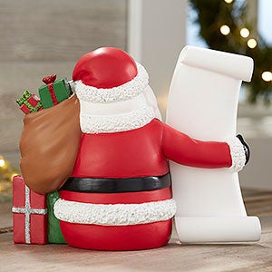 Add an adorable piece of holiday decor with the Santa's Nice List Personalized 3-D Resin Shelf Sitter. The colorful and jolly 3-D Santa is accented with gifts and a toy sack as well as a list engraved with "Santa's Nice List" at the top.