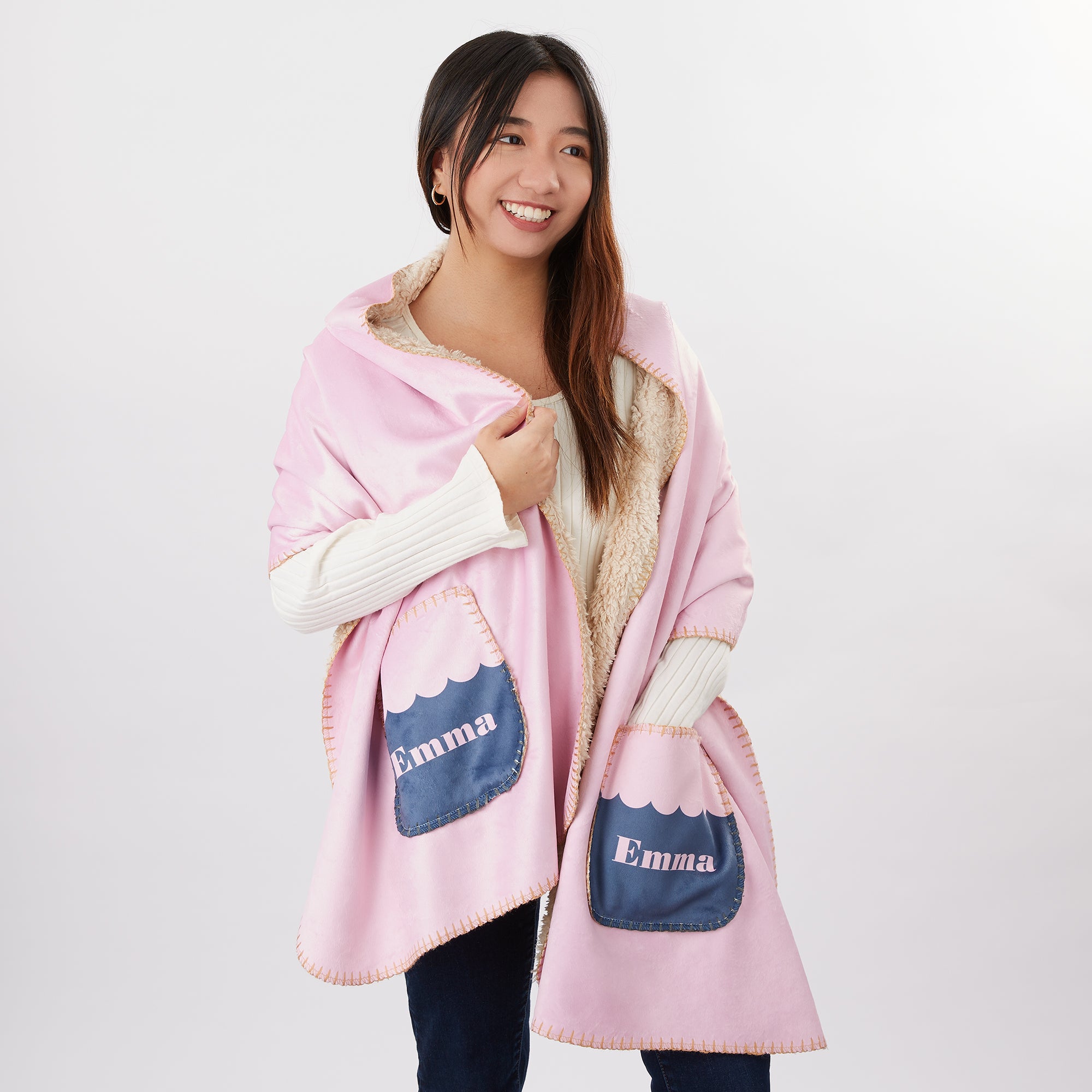 Wrap yourself in personalized luxury with our Scallop Me Pretty Personalized Cuddle Wrap. Crafted from the softest materials, this wrap offers the ultimate comfort and warmth, perfect for cozy evenings and lazy weekends. Featuring an scalloped printed design with pockets that can be personalized with your name or monogram, this cuddle wrap is as unique as you are. The playful yet sophisticated detailing adds a touch of charm that will make you feel cherished and snug, whether lounging by the fireplace or enjoying a crisp morning on the porch.