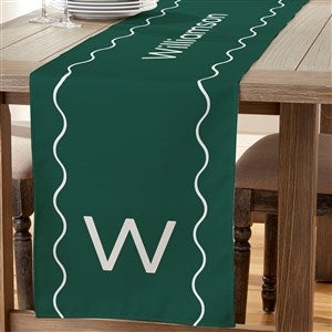 Bring personality to your table with our Scalloped Accent Personalized Table Runner. Designed with clean lines, a flowing scalloped pattern, and space for a custom name or initial, this piece blends modern style with classic sophistication. Ideal for family dinners, seasonal celebrations, or gifting, it instantly enhances any dining room with a polished, personalized look.
