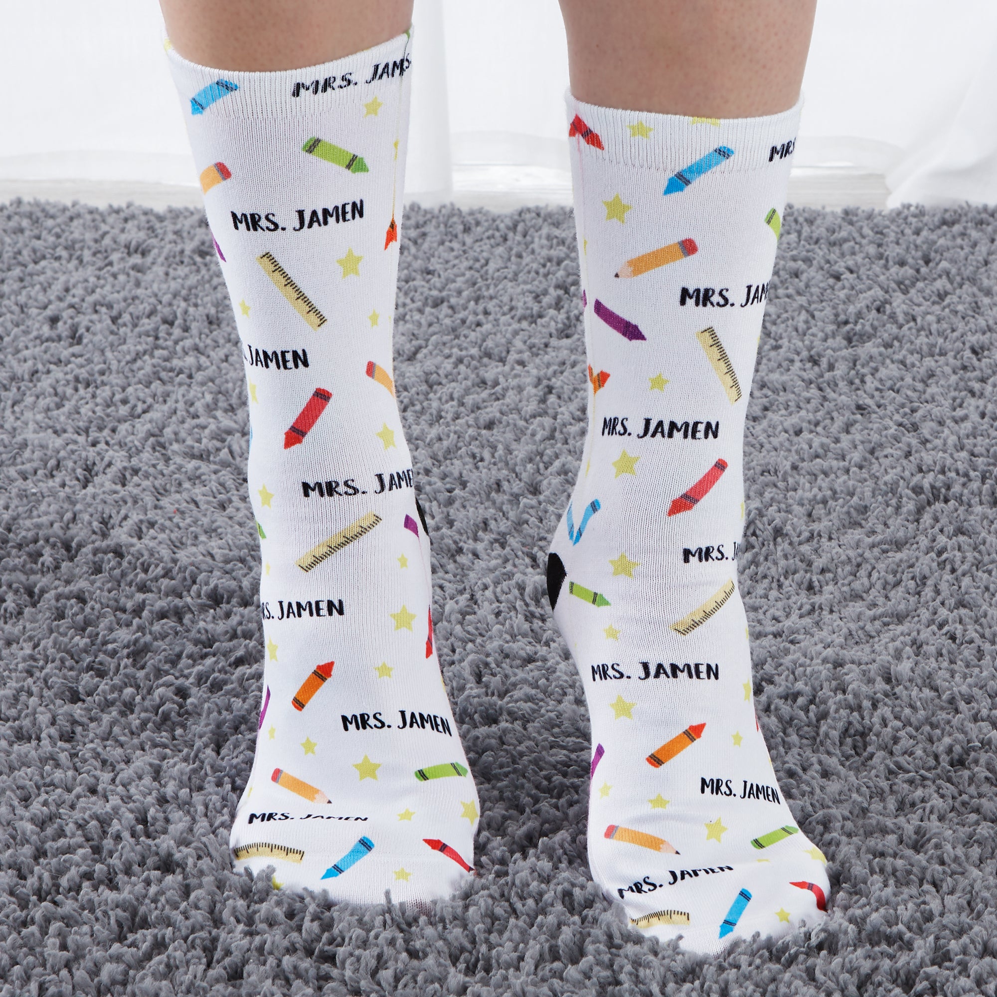 Product Information 26796 - School Supplies Personalized Adult Teacher Socks