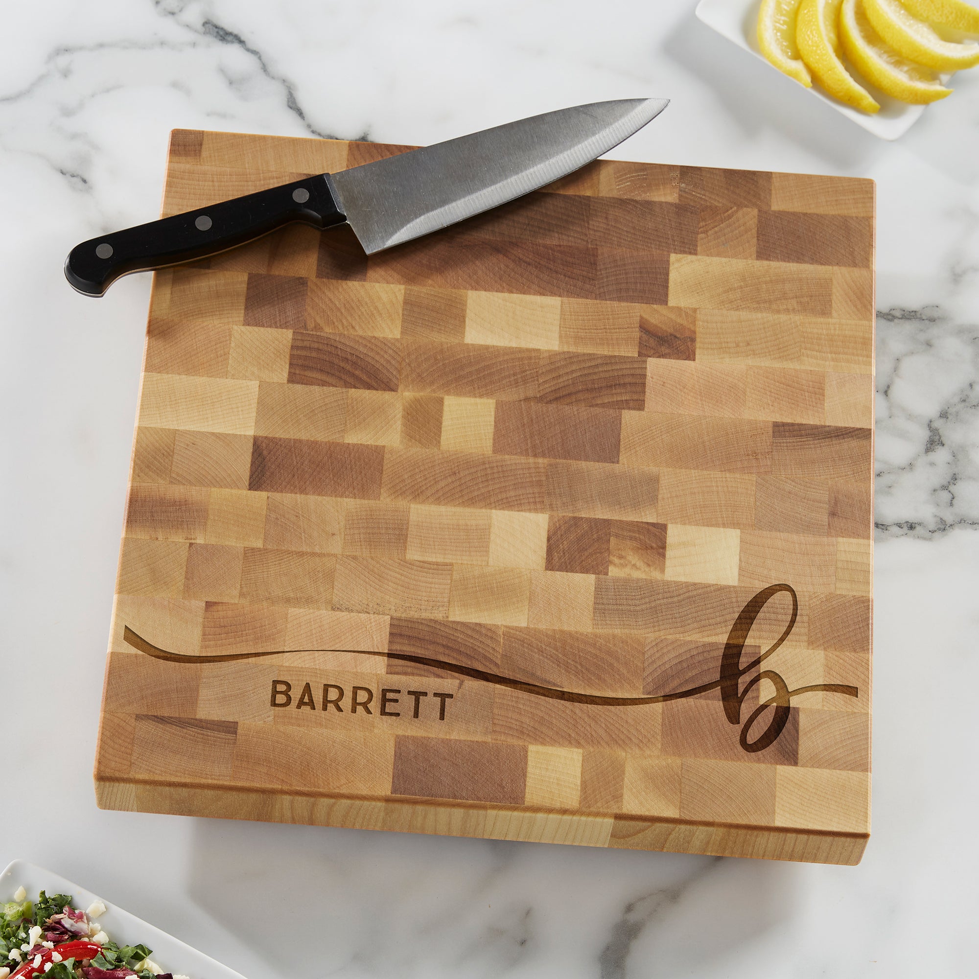 The Script Initial Personalized Butcher Block Cutting Board is a top quality gourmet product made for the serious cook.