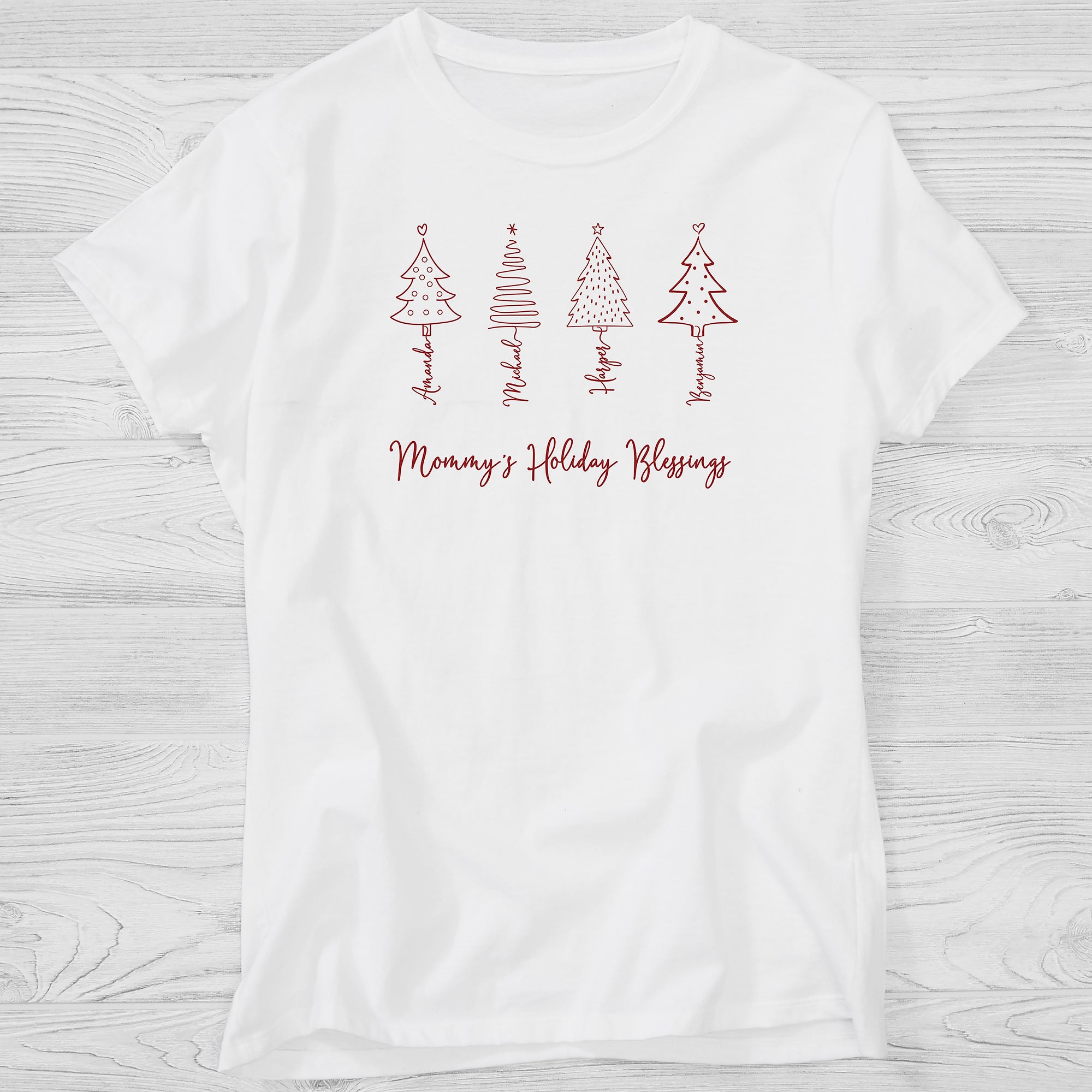Our Scripted Christmas Tree Personalized Ladies Shirts will add some festive holiday cheer to any wardrobe.
