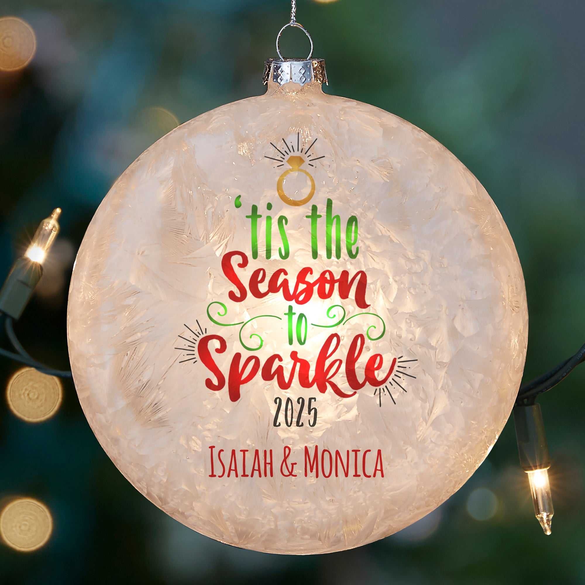 Season To Sparkle Lightable Frosted Glass Engagement Ornament