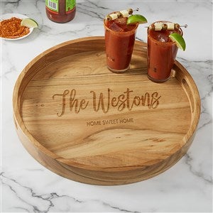 Seasonally Script Engraved Acacia Wood Round Serving Tray