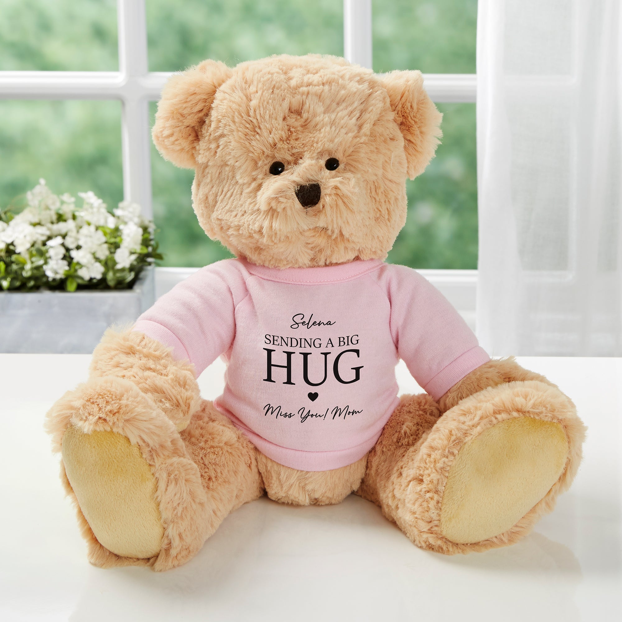 Send hugs to someone special with the Sending Hugs Personalized Teddy Bear. The plump little tummy and super soft fur makes this bear perfect for snuggling.