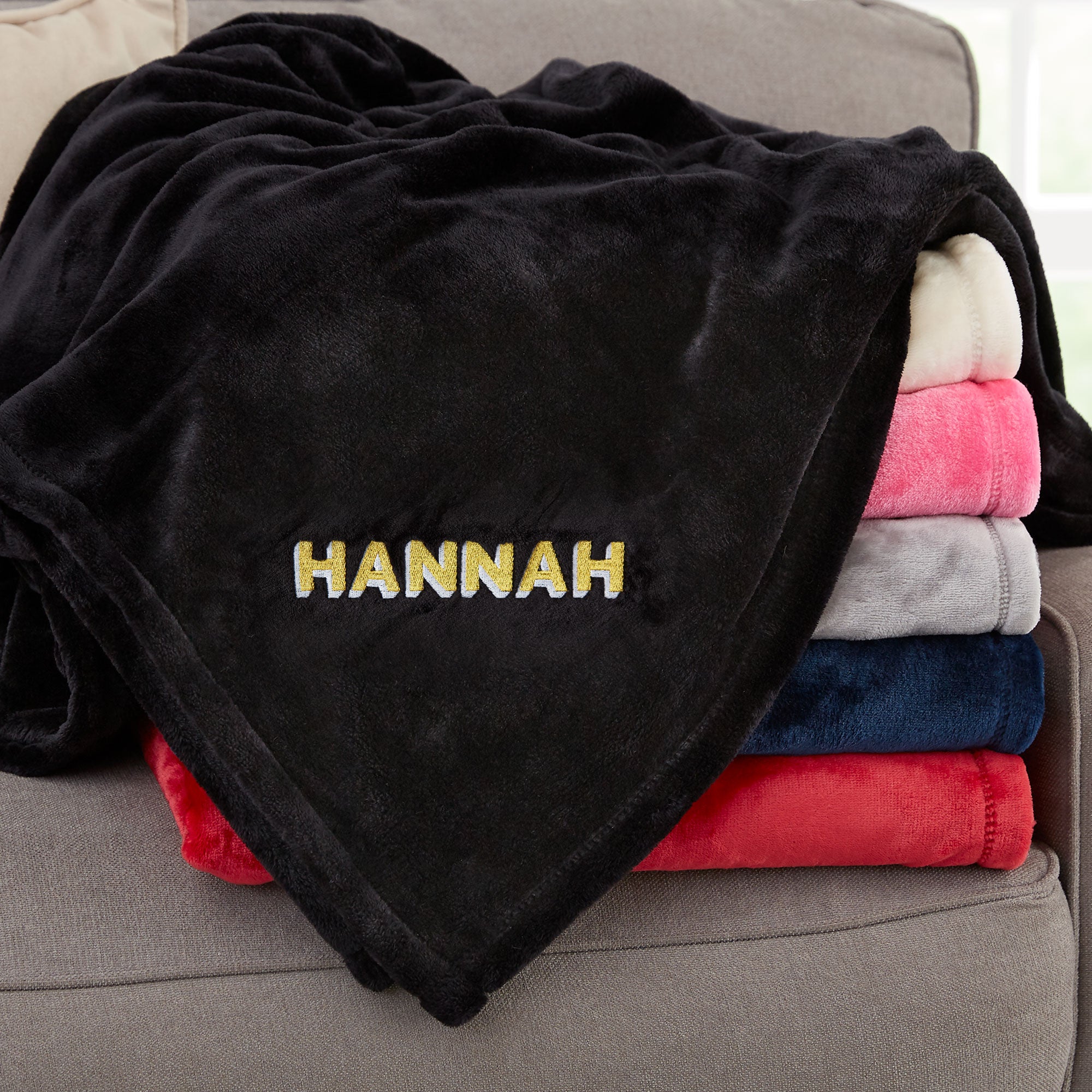 Our luxuriously soft Shadow Name Embroidered Fleece Throw is wonderfully constructed of super-soft, micro coral fleece making it a popular choice for rest and relaxation. You have to feel it to believe it!