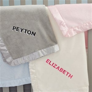 Shadow Name Embroidered Satin Trim Baby Blanket