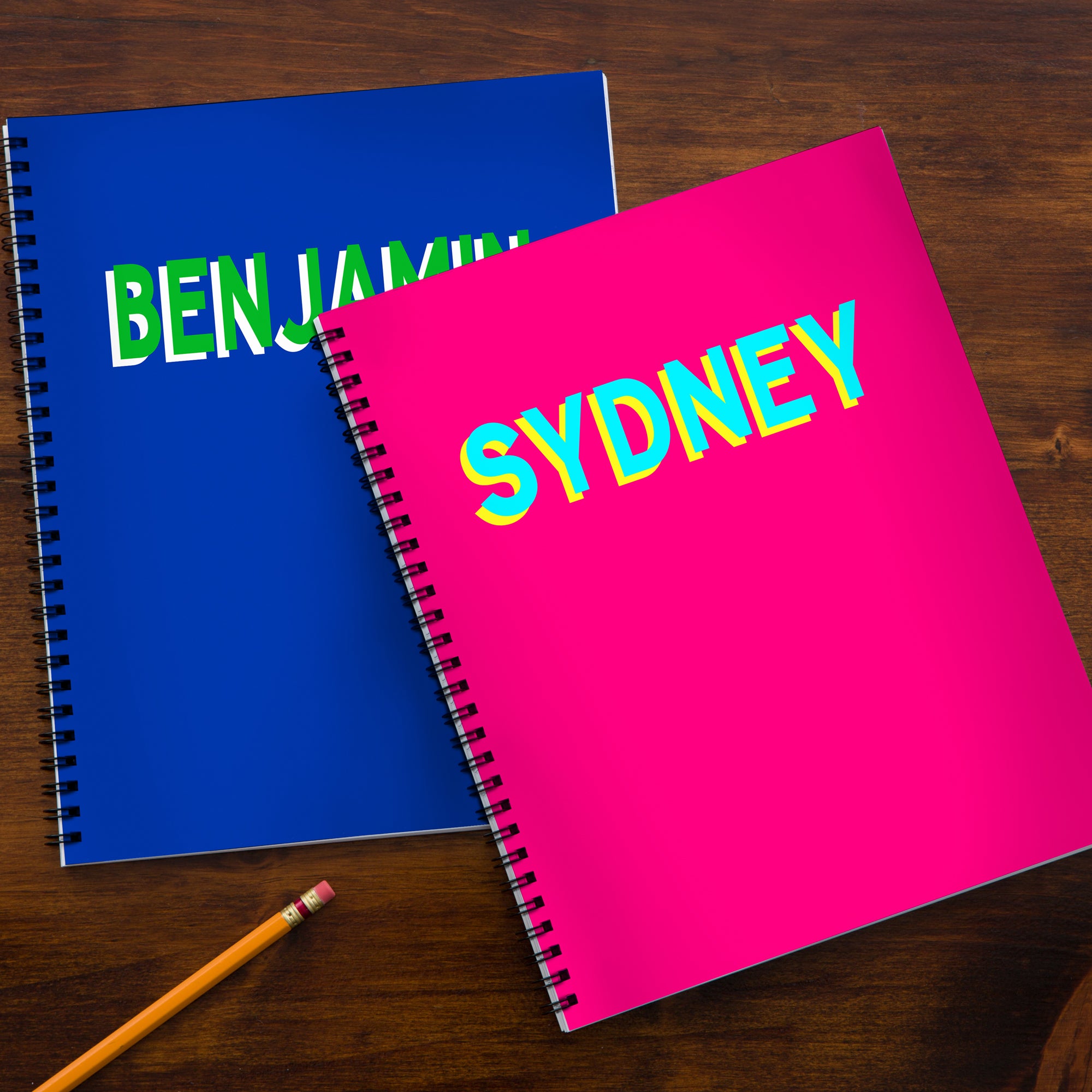 These fun Shadow Name Personalized Large Notebooks are perfect for school, work or playing at home! The notebooks are spiral bound and the pages are ruled for convenient note-taking!