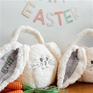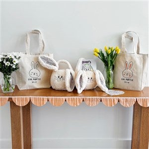 Sherpa Bunny Embroidered Plush Easter Treat Bag