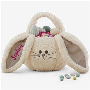 The Sherpa Bunny Embroidered Plush Easter Treat Bag is perfect for your kid's egg hunts this holiday season.
