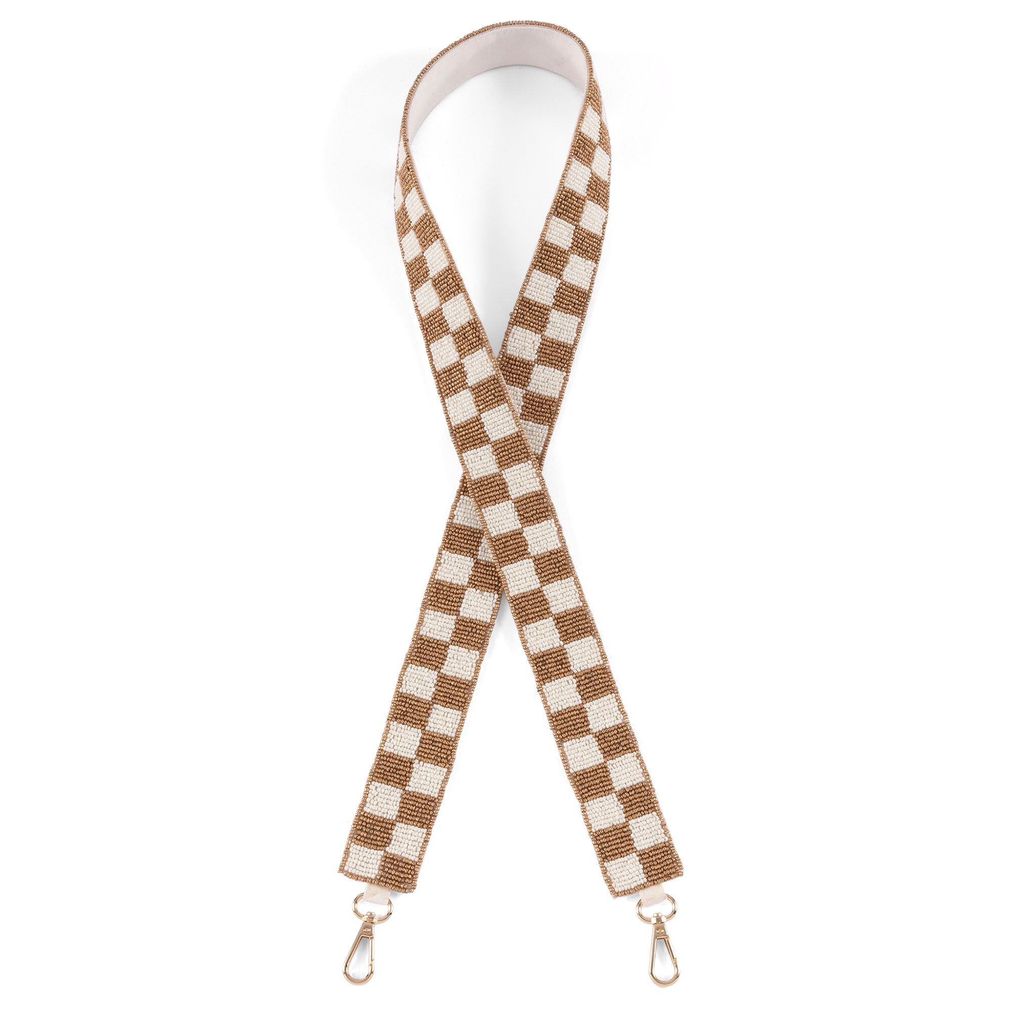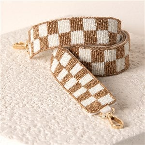 - Gold and Ivory Check Beaded Bag Strap with gold hardware