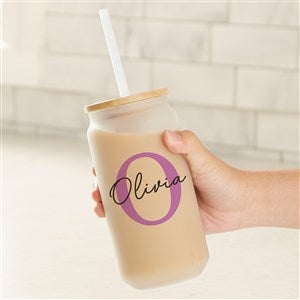 Sip in style with our Simple Signature Personalized Frosted Iced Coffee Tumbler. A bamboo lid and straw add sustainable style and functionality, making this a perfect choice for travel drinkware and reducing spills in any environment! The bamboo lid fits perfectly on the glass and has a hole specifically built for the straw.