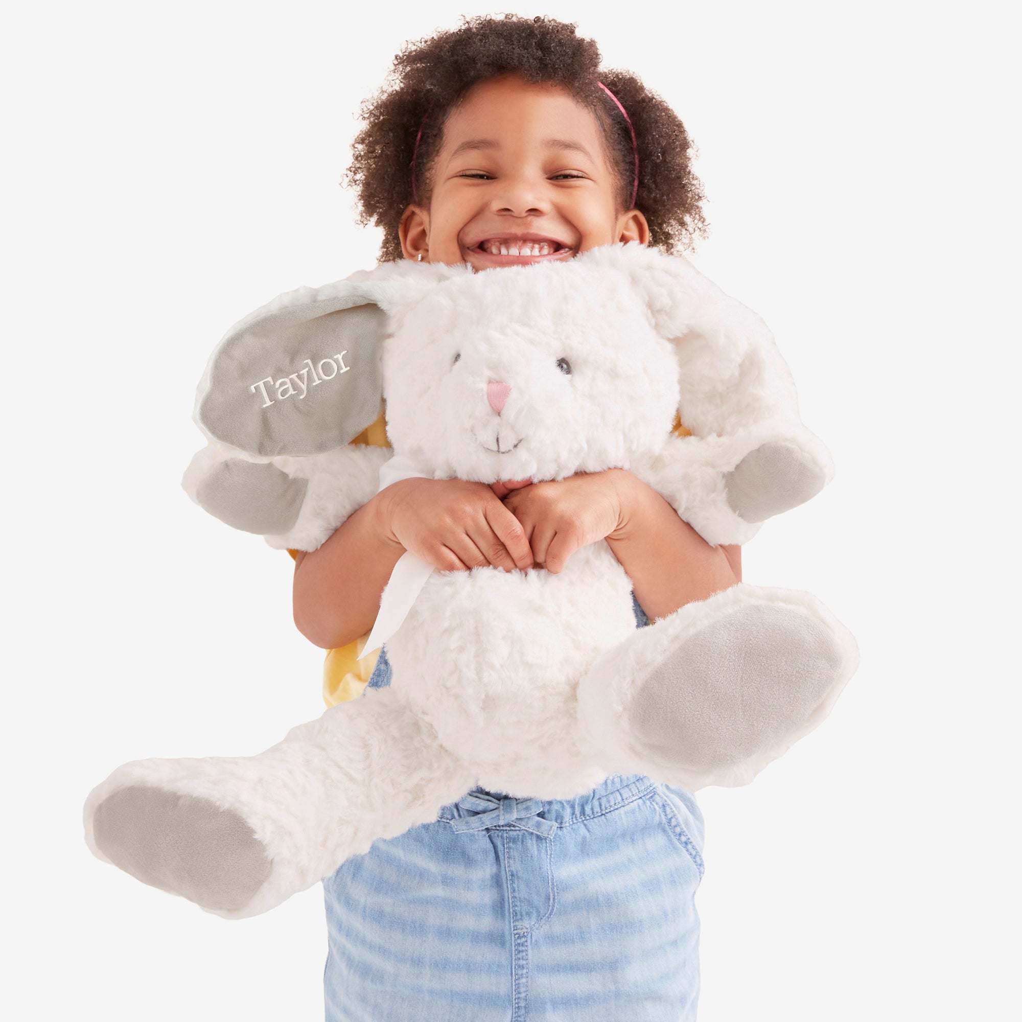 Standing an impressive 27" tall, our soft and cuddly Simply Sweet Personalized Large White Fur Plush Bunny is the furry friend kids will want to keep close. The larger size makes it easier for little ones to hold and snuggle.