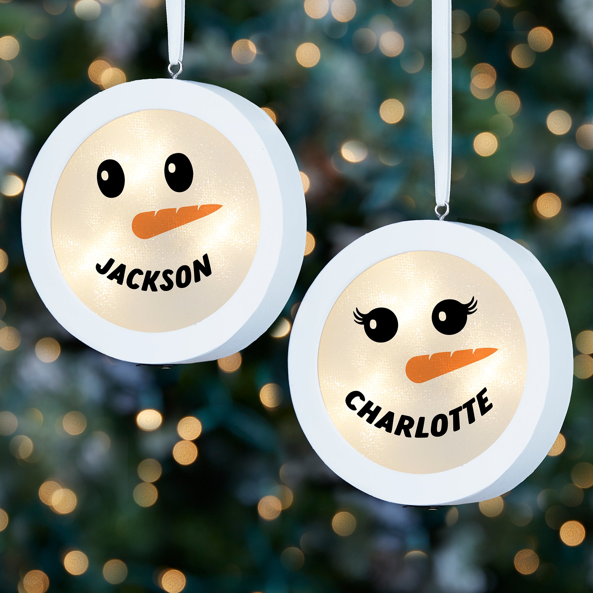 The Smiling Snowman Personalized LED Light Ornament will make a memorable ornament to give as a gift or hang on your own tree year after year.