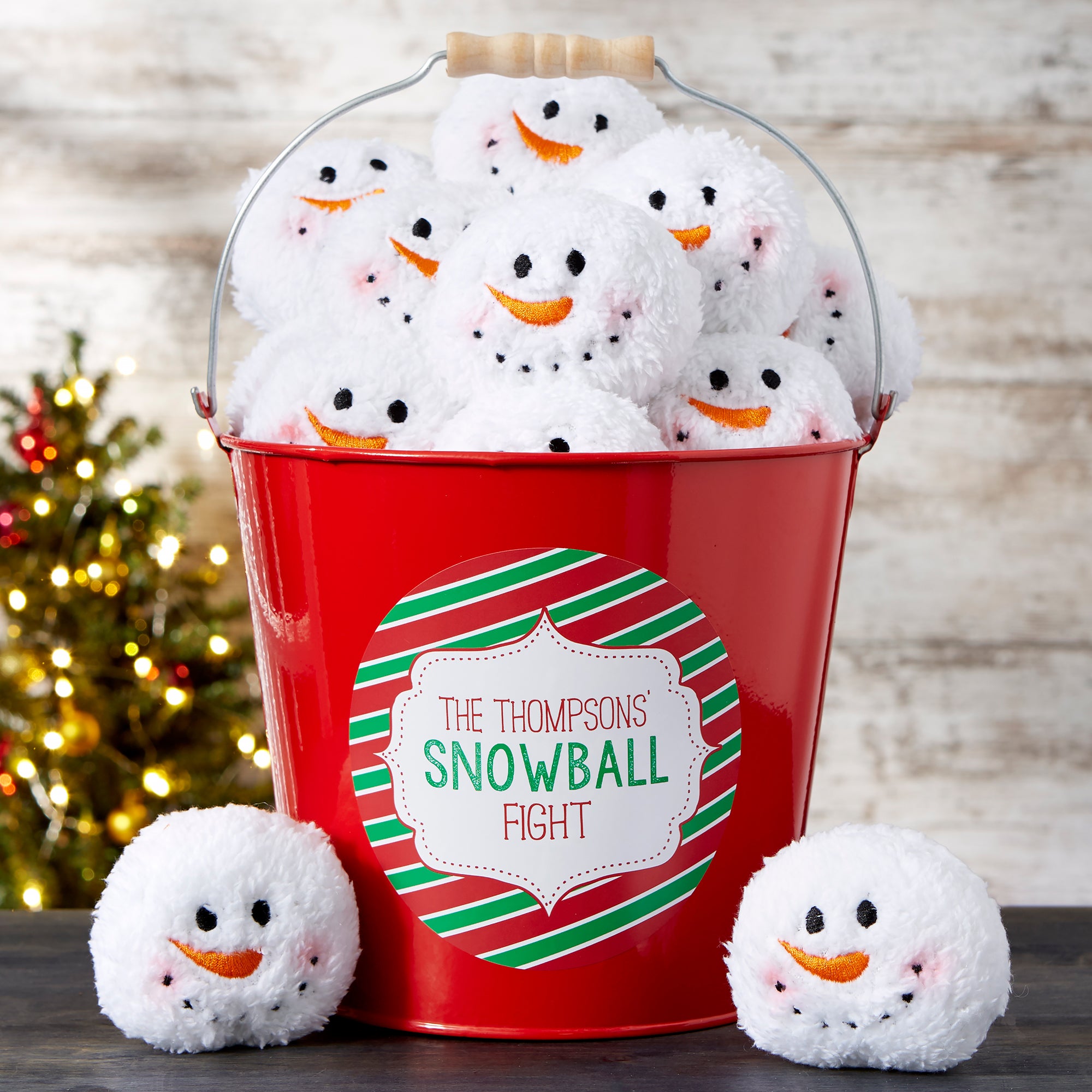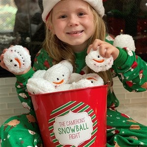 The Snowball Fight Personalized Red Metal Bucket offers endless hours of fun. The charming Christmas metal bucket makes an adorable Christmas Gift!