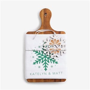 Snowflake Family Personalized Tea Towel, Paddle Board and Ornament Gift Set