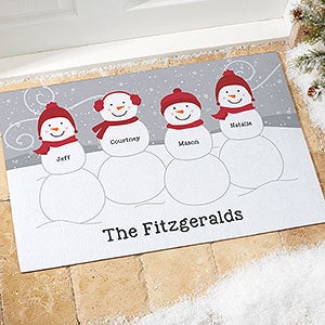 Give friends and family a warm welcome this holiday season with our Snowman Family Personalized Doormats.