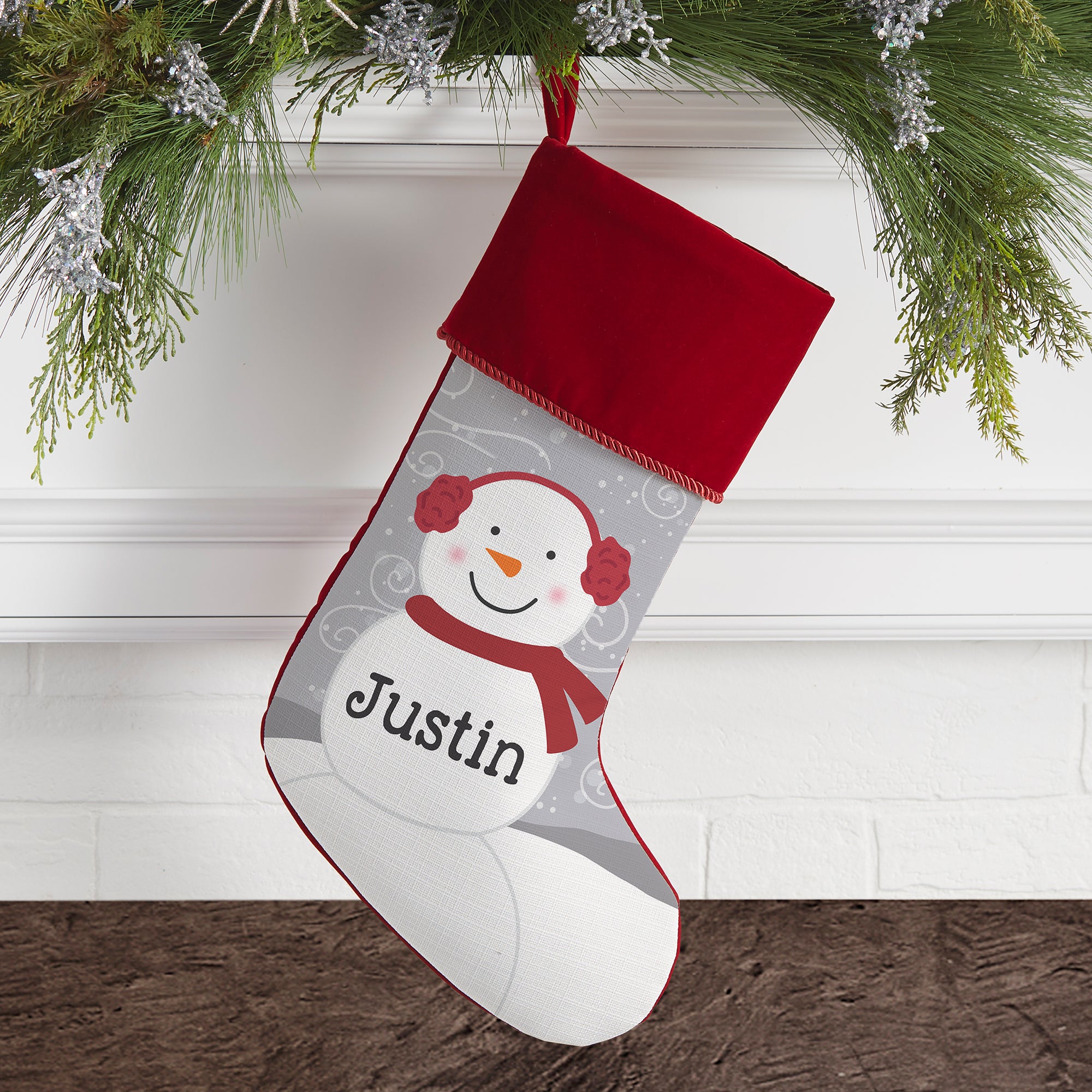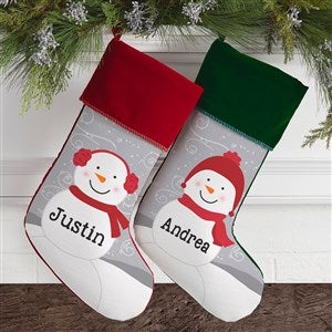 Make a whimsical and warm addition to your holiday home this year and every year with our Snowman Family Personalized Christmas Stocking!