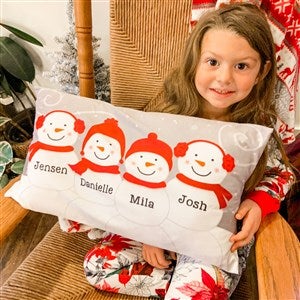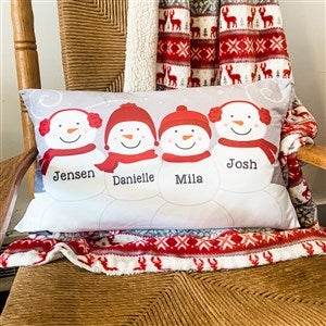 Add some holiday flare to your chair or sofa with our Snowman Family Personalized Throw Pillow. The printed snowman design is sure to add a festive winter cheer to any home decor.