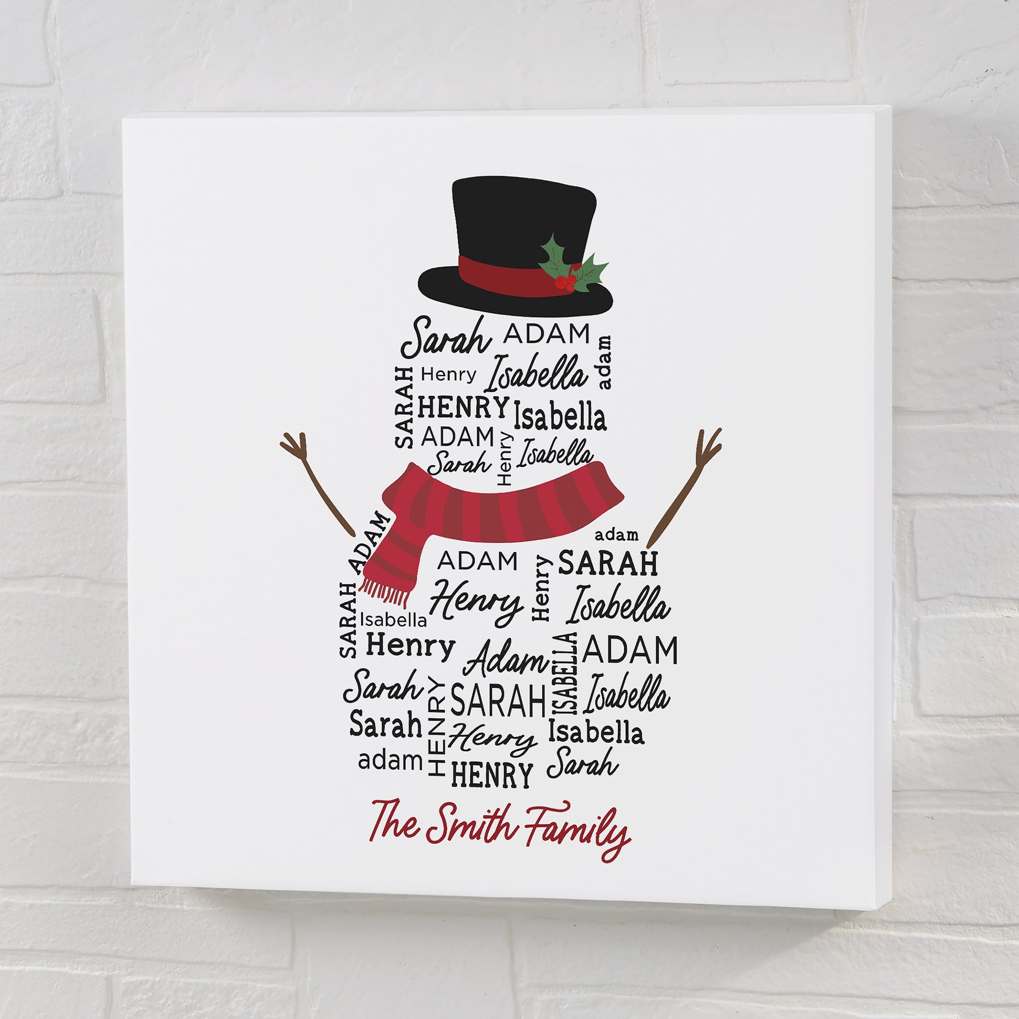 Decorate your walls this holiday season by hanging our festive and fun Repeating Snowman Personalized Canvas. Hang this holiday décor on the wall or prop up on a shelf or mantel.