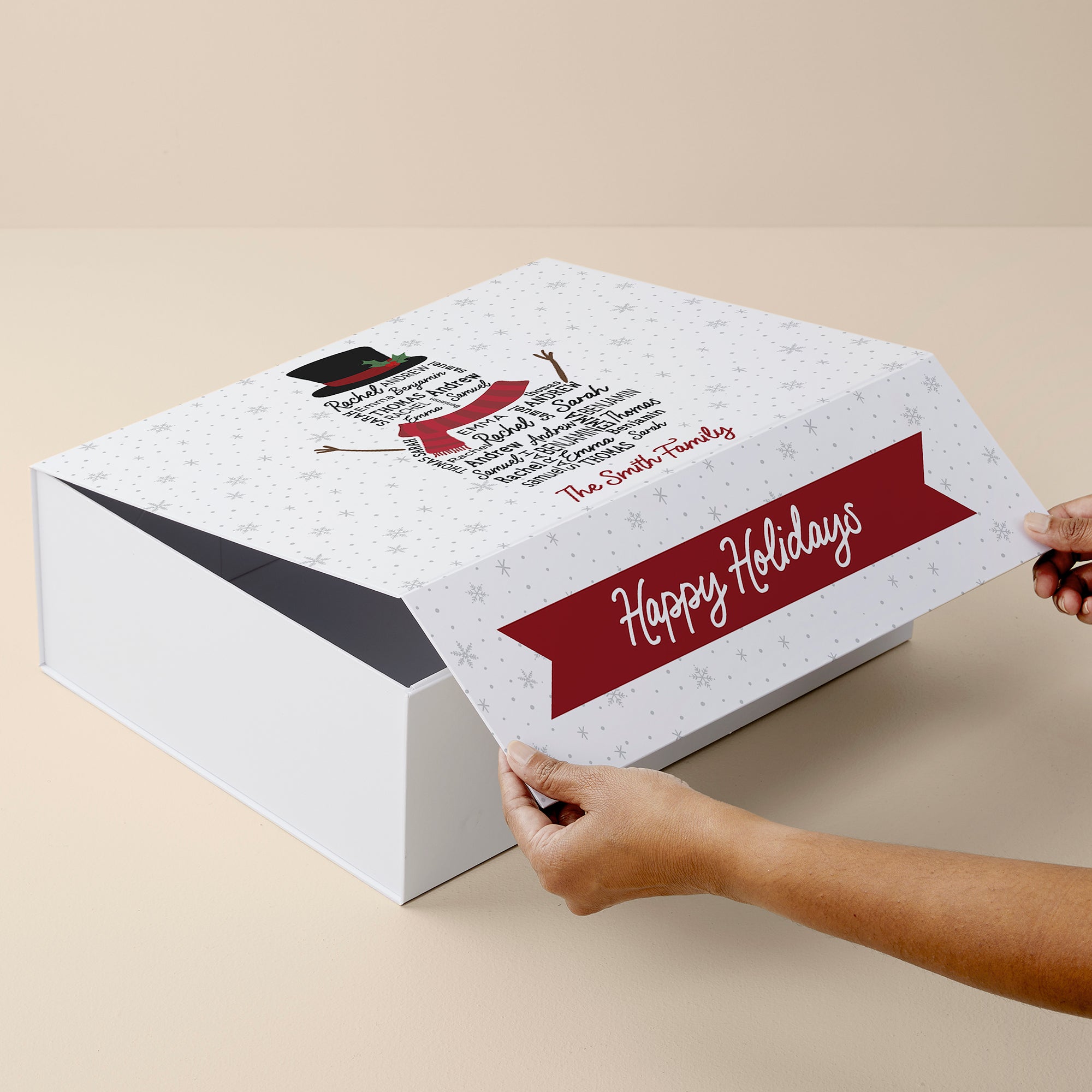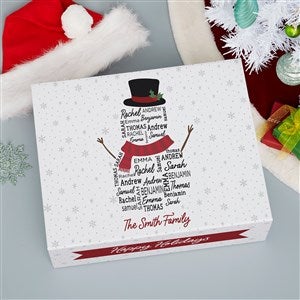 Our Snowman Repeating Name Personalized Christmas Keepsake Box is a festive way to preserve precious memories or give as a gift!