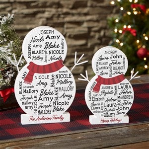 Add a simple, but festive piece of holiday décor with the Snowman Repeating Name Personalized Wooden Snowman. The repeating names within the snowman will add a whimsical look to your holiday décor year after year.