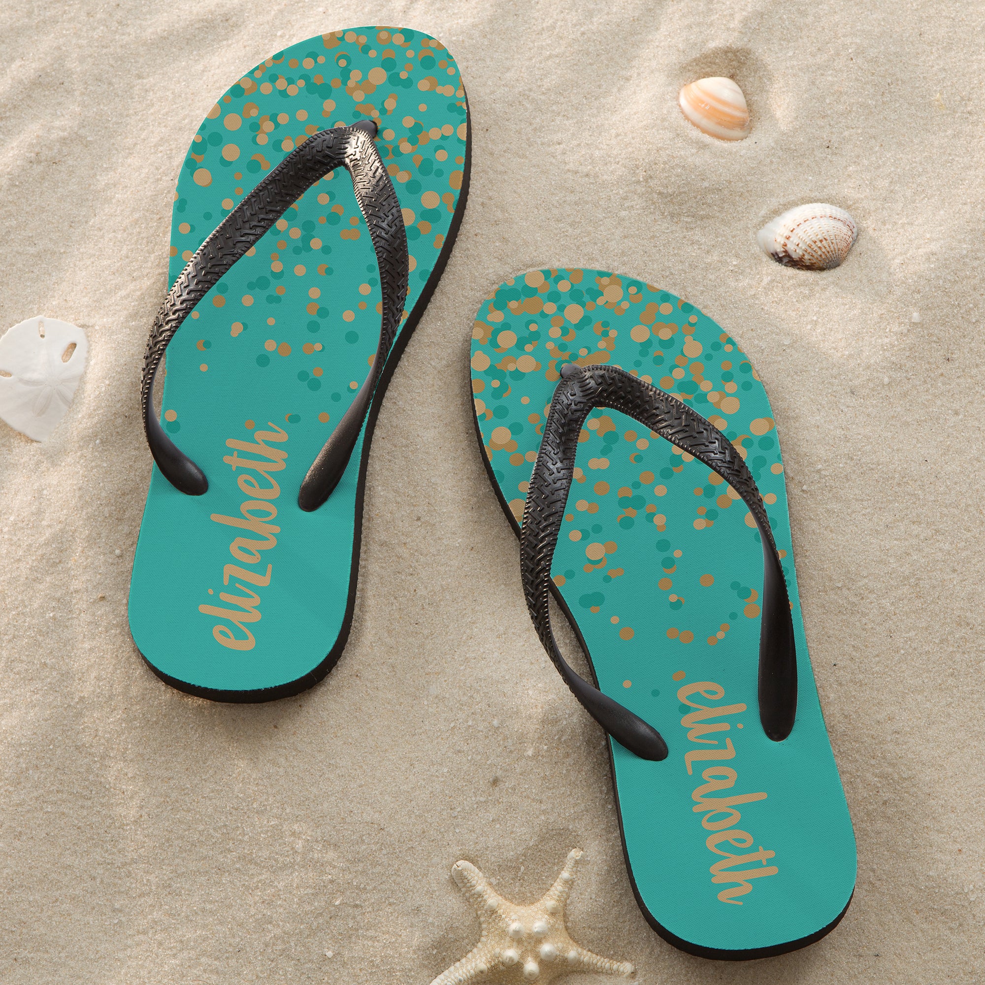 Step out in style this summer with our Sparkling Name Personalized Adult Flip Flops. The perfect accessory for beach and pool days!