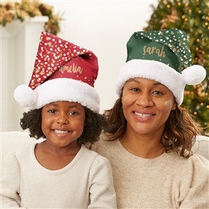 Holiday pictures will be extra special this year when the entire family is decked out in their own Sparkling Name Personalized Santa Hat! Our Santa hat is perfect to wear while trimming the tree at home, to holiday parties, the office, or Christmas caroling. Sure to add some extra festive fun to your Christmas this year! Elf tested, Santa approved!