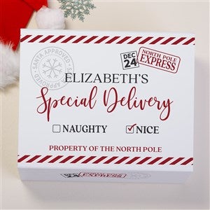 It is too hard to wait until Christmas morning so let them enjoy a gift packaged in their very own Special Delivery Personalized Christmas Keepsake Box. The keepsake box can be packed away and used year after year.