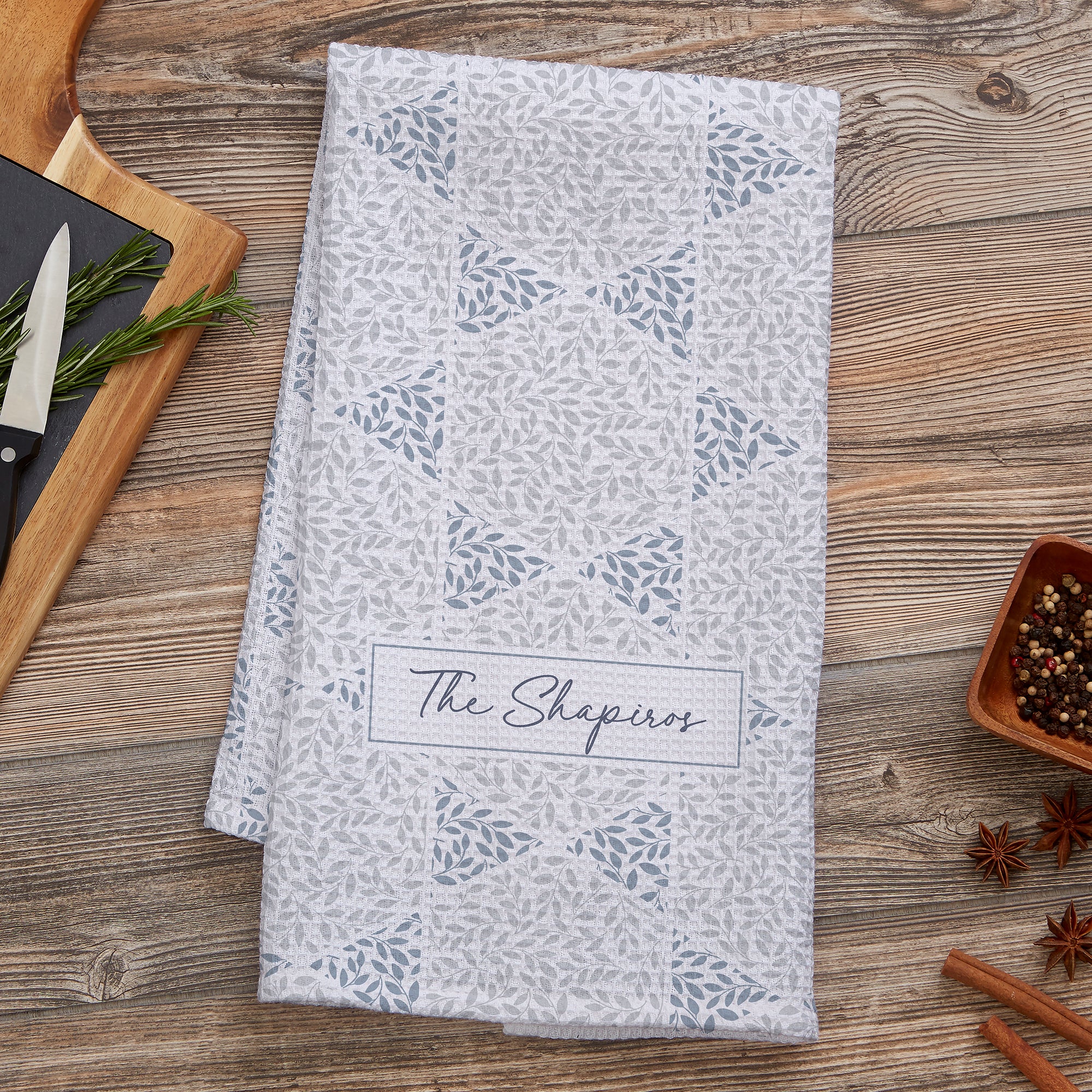Classic and functional, our Spirit of Hanukkah Personalized Waffle Weave Towel is the perfect accent piece to any kitchen. The towel features a subtle Star of David design.