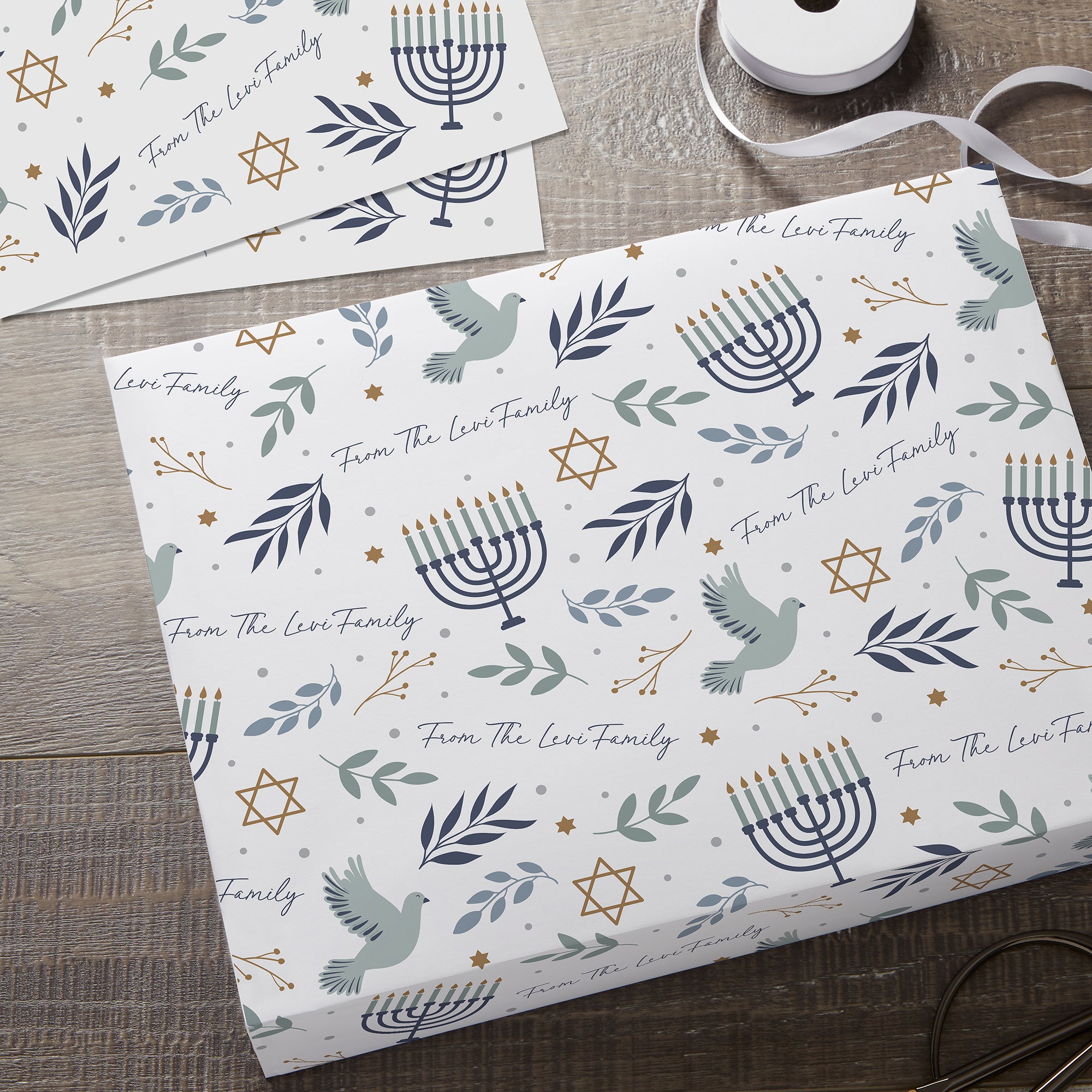 Wrap each gift in unique personalized style with the Spirit of Hanukkah Personalized Wrapping Paper.