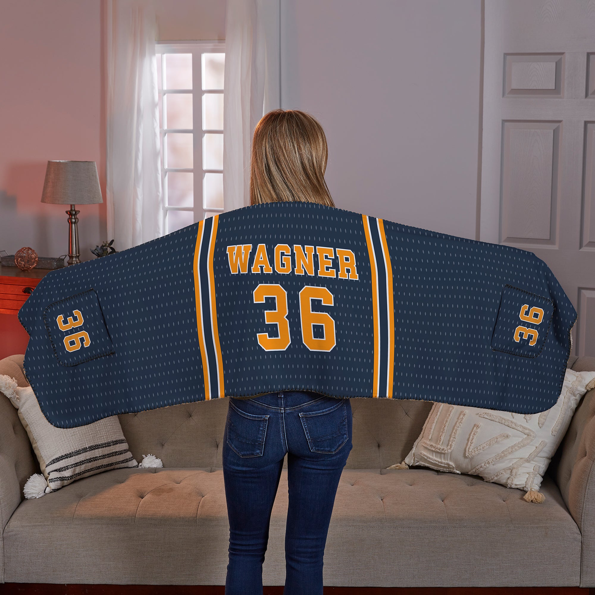 Keep yourself warm and cozy while watching the big game with our Sports Jersey Personalized Cuddle Wrap.